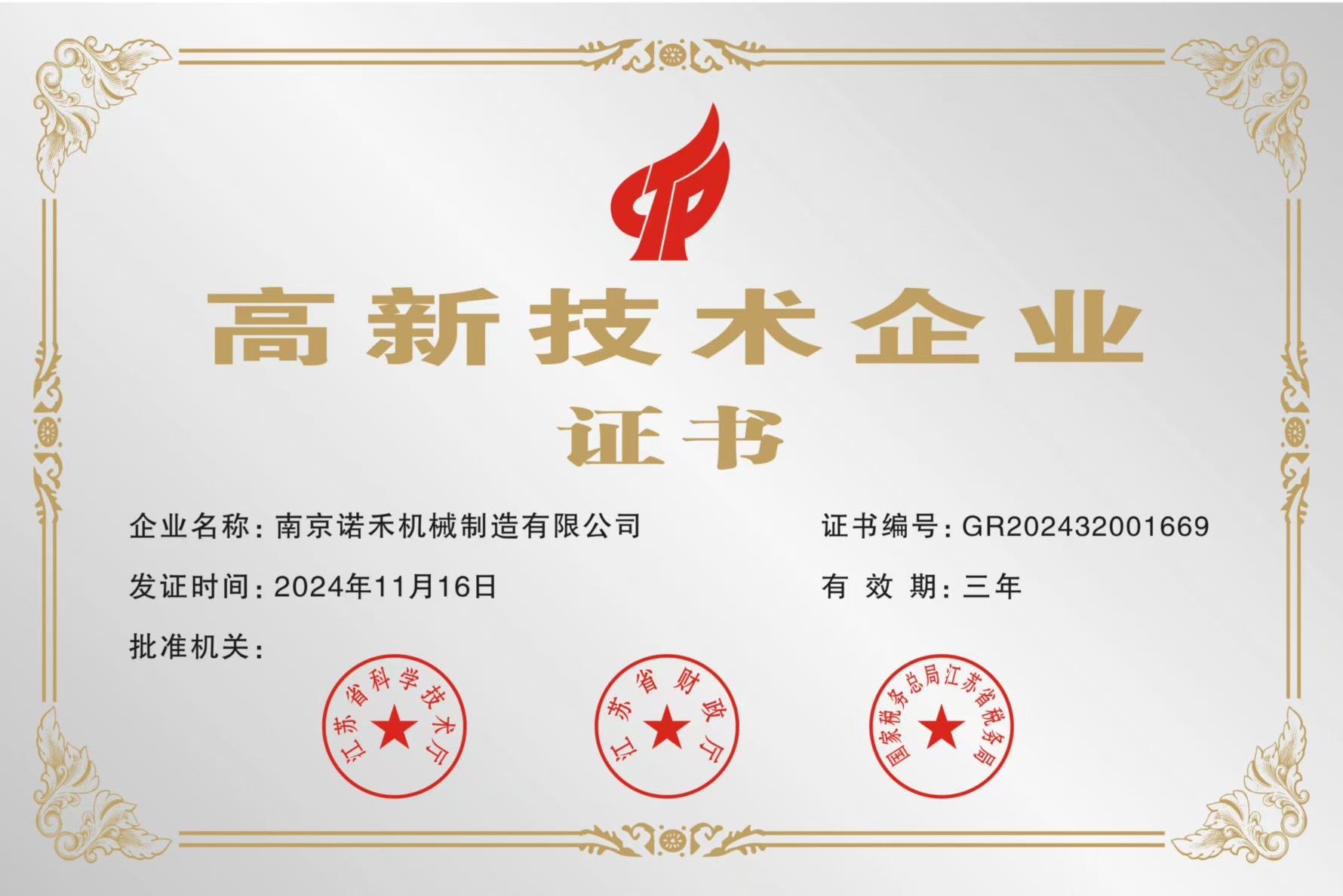 高新技術企業證書