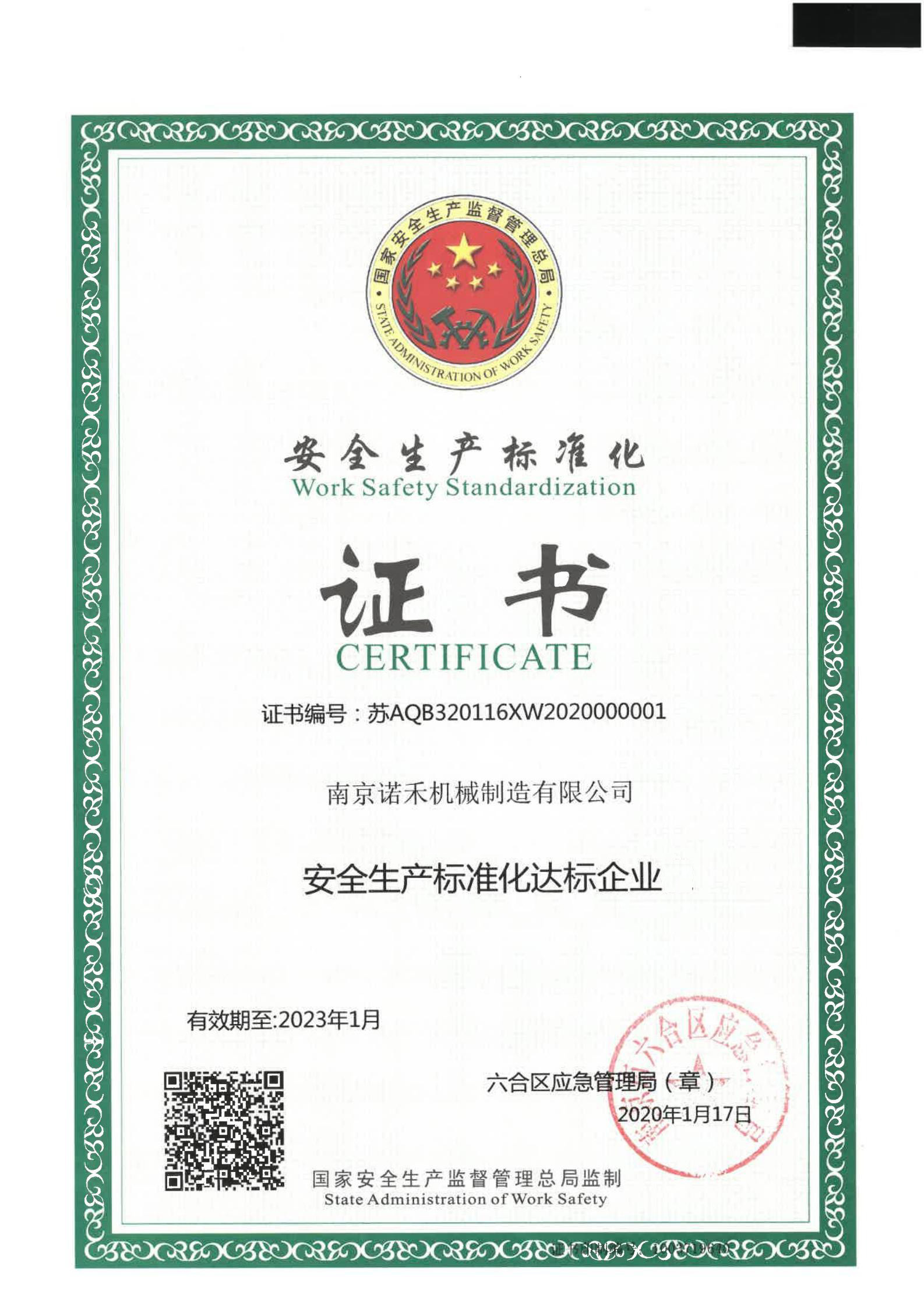 安全生產化達標企業